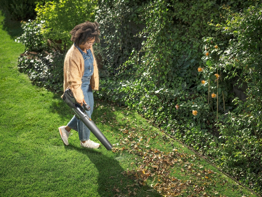 Entre os aliados mais práticos do outono está o soprador Aspire B8X-P4A, uma ferramenta leve — pesa apenas dois quilos sem bateria — que permite remover folhas e restos vegetais de forma rápida e eficaz. O seu motor sem escovas oferece um fluxo de ar constante e ajustável em três níveis, para se adaptar tanto a folhas secas como a montes mais húmidos. O tubo amovível e o gancho para pendurá-lo simplificam o seu uso diário e armazenamento, algo especialmente útil em espaços pequenos.