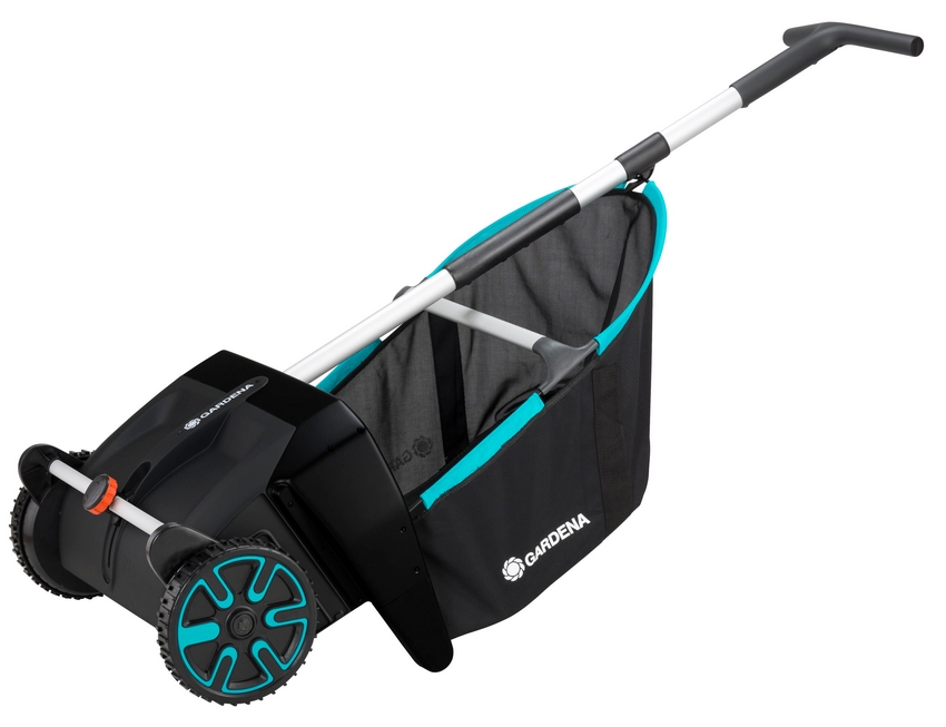 O coletor de folhas e relva permite recolher folhas e restos de relva de forma rápida, silenciosa e sem necessidade de se baixar, graças ao seu sistema de escovas que funciona sem motor.