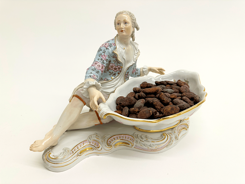 Ao longo de vários núcleos temáticos, surgem elementos como cacau, chá, café, tabaco, pimenta ou coco, produtos que estiveram no centro das redes comerciais e diplomáticas que ligavam continentes e chegavam às coleções da coroa. Transportados através das rotas marítimas e do comércio ultramarino, tornaram-se símbolos de prestígio, exotismo e influência nas cortes europeias.